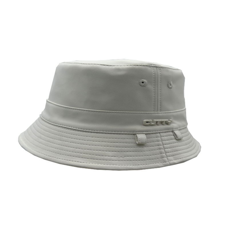 Bucket hat metal ingot on left ●100% coated cotton twill ●Branded metal ingot on left ●Color: many available ●Case pack: 100 or 144 or 150