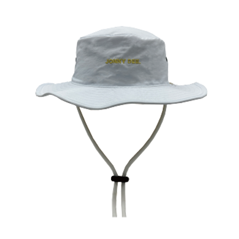 Nylon bonnie hat Flat brim ●Taslon, 100% Nylon ●branded gold falt embroidery ●Brim edge is shaped with iron wire ●Adjustable drawcord ●Color: many available ●Case pack: 100 or 144 or 150