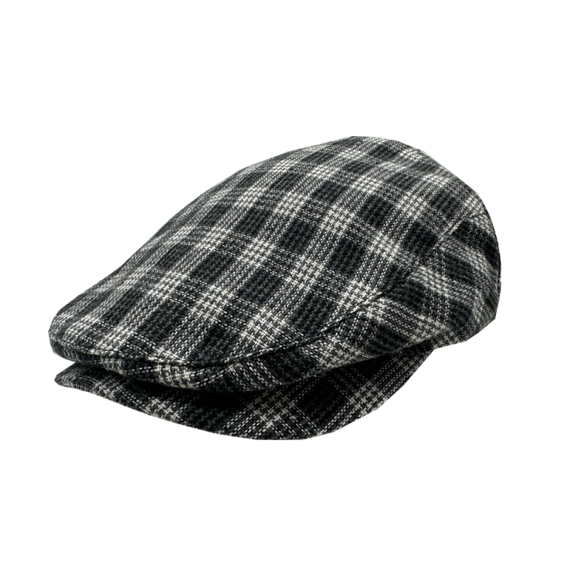 Classic black and grey checkered pattern Flat cap,circular crown panel,stiff brim,cotton blend material;